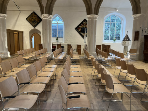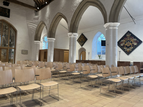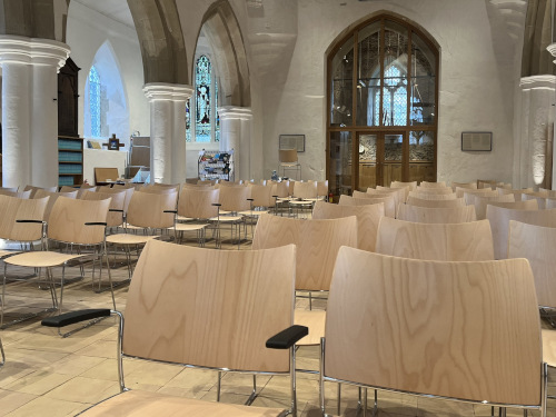 They opted for Natural Beech shell Curvy chairs with a chrome frame and had a mixture of linking and non linking chairs as well as some chairs with arms. Transport dolleys were also supplied to help with changing layouts for community events.
